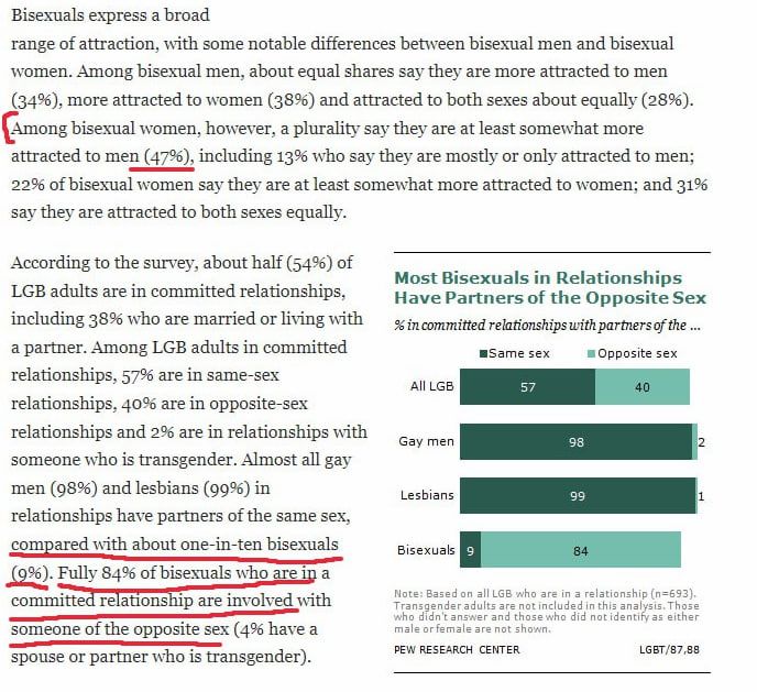 половина бисексуалок заявила, что их больше привлекают мужчины;