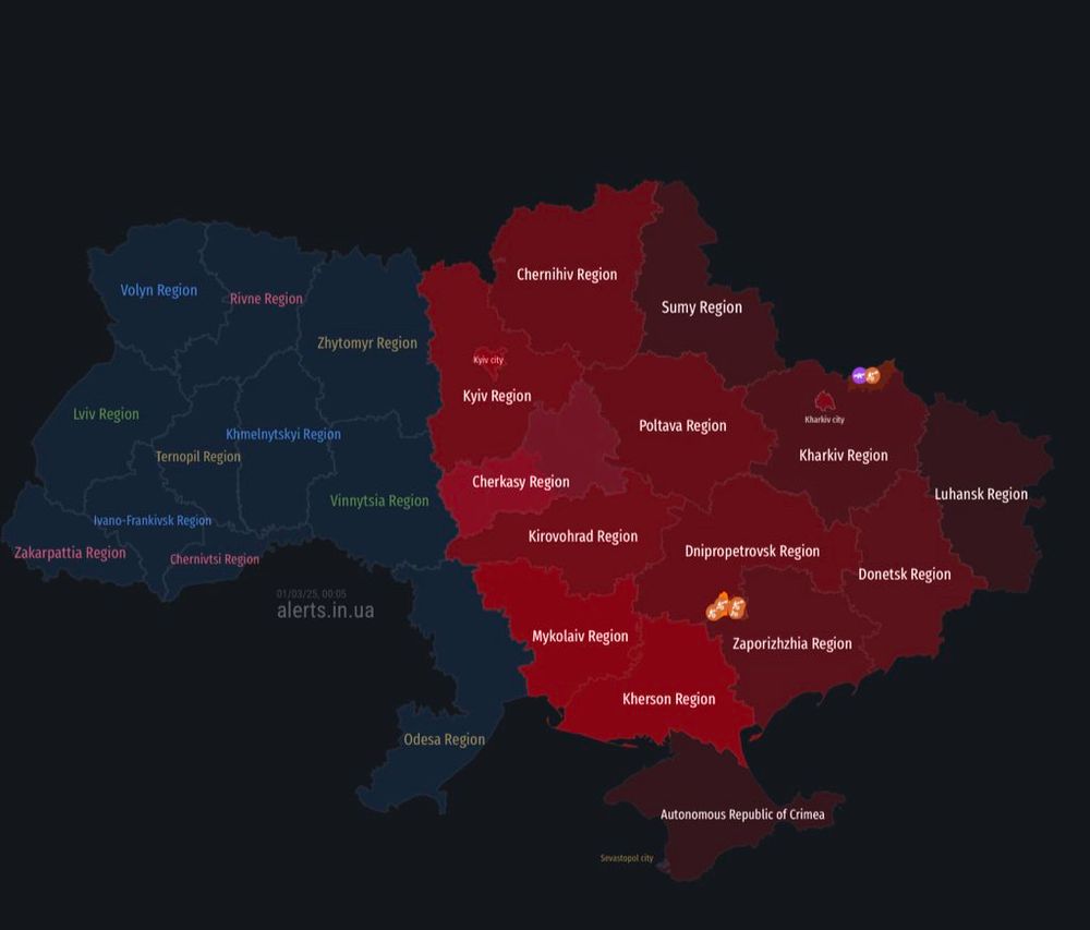 An air raid alert has been declared in Kyiv and multiple regions across Ukraine.