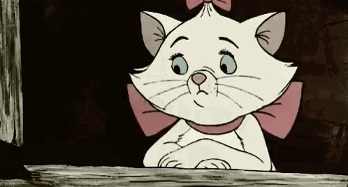ALT: marie from the aristocats is looking out of a window with her paws crossed .