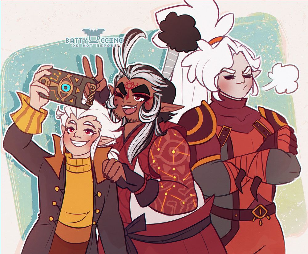 Artfight attack on @waterglider.bsky.social with their Yiga sisters and my Master Kohga. Yiga selfie. 📸 #zelda #fanart #botw
