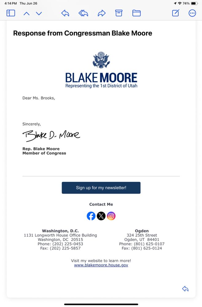 This is the response I received from my congressional rep…