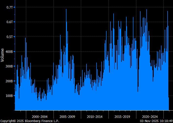 Bitcoin has pretty convincingly lost the 50-week moving average. Current price of $98,000 is about 5% below the 50-week MA at $103,000.