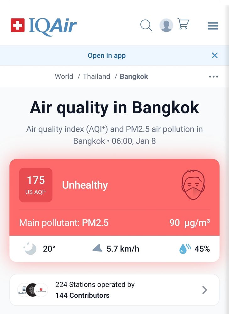 I've had the worst cough since I arrived in Bangkok. It didn't feel like the virus kind of cough, so I looked into it and I've found the culprit. Red-level air quality alert here.