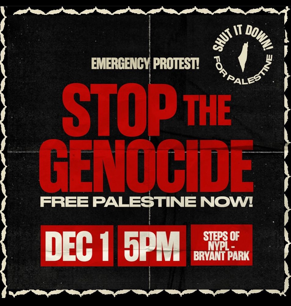 Emergency action today, December 1, at 5 pm at NYPL Bryant Park