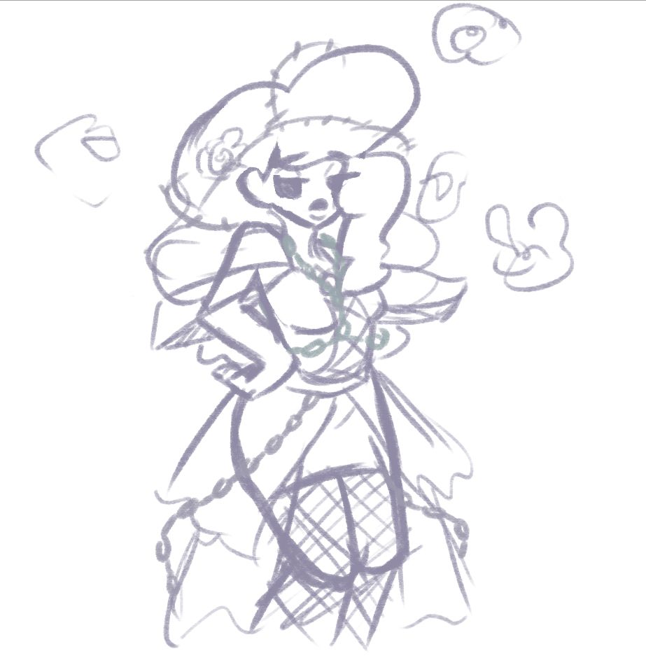 Doodling a "date outfit" for @bibbleskit.com of Nyx Gunlance Roseblood.