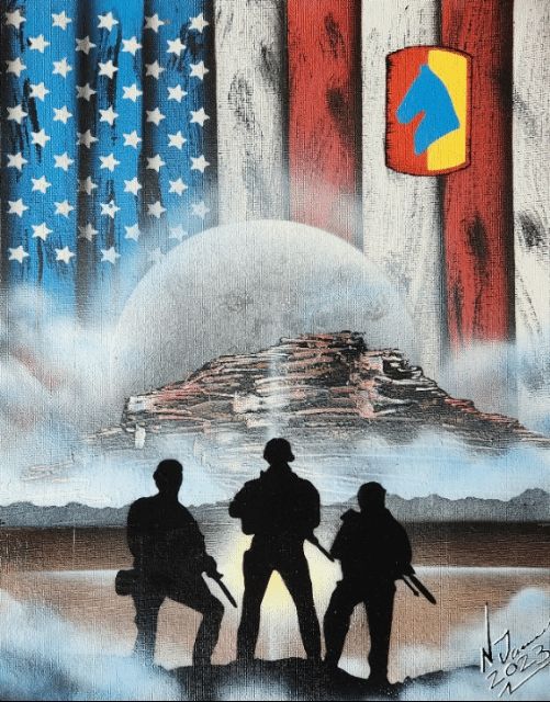 I made this for my wife's co-worker before he was deployed last year, design originally by my friend DexxArt, made by me with techniques he taught me #spraypaintart #sprayart #spraypaintartist #milliary #servicemembers #artwork #artist #bignickjames #spraypaint