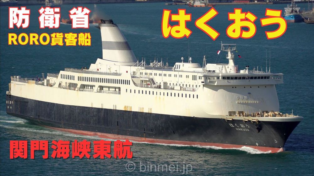 Just uploaded YouTube video. The Ministry of Defense operated, High-speed Marine Transport owned, Shinnihonkai Ferry managed, ro-ro passenger ship HAKUOU sailed the Kanmon Strait.