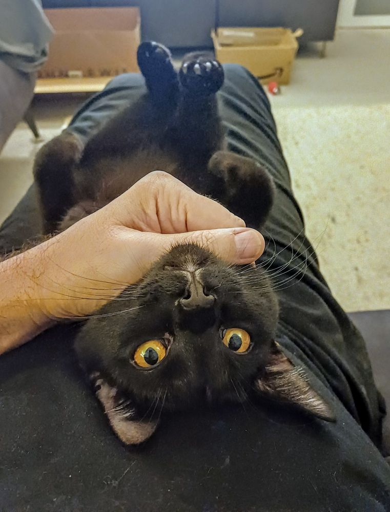 @thenorfolkbroad.bsky.social and I started being visited by a big old hissy stray cat about 6 mths ago, and this is him now. Bruiser is now officially part of the gang #catwhisperer #adoptdontshop #catsosbluesky