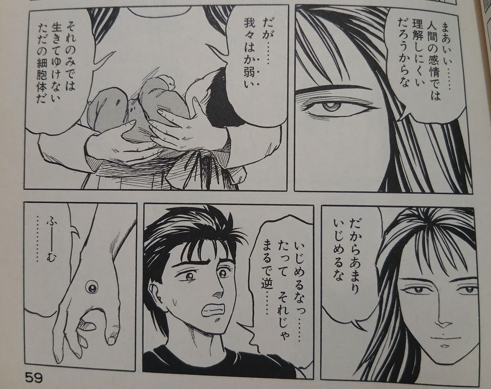 今の「熊はかわいそうなのか?」問題にも通じると思うんだけど、「寄生獣」の核の部分ってこのやりとりなんじゃないかな