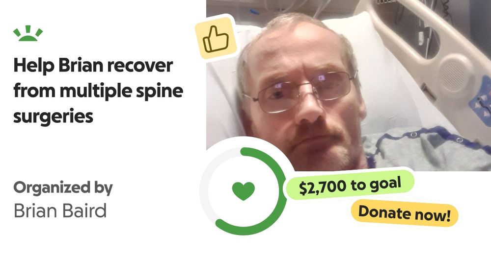 Hi, My name is Brian. I'm currently undergoing treatment for a fracture… Brian Baird needs your support for Help Brian recover from multiple spine surgeries