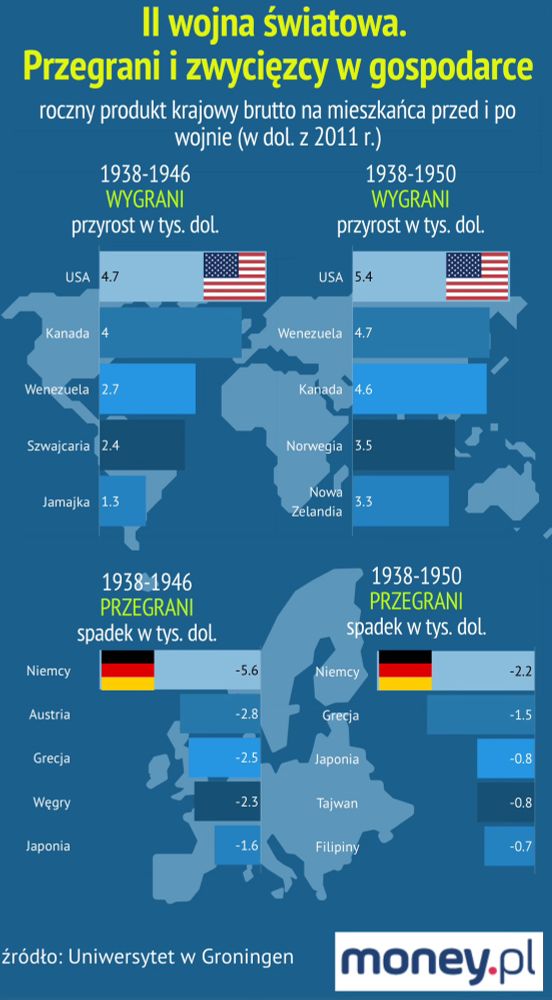 Bo przed IIWS USA tkwiło w stagnacji, a wojna rozkręciła ten kraj i uczyniła go superpotęgą. Rownolegle z niesieniem wolności i demokracji amerykańskie firmy rozkręciły się już na dobre.