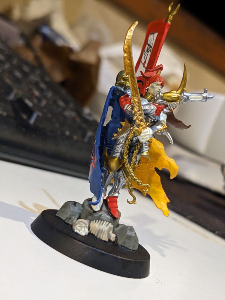 My Archon I built and kitbashed to be a lot less psycho than standard Drukhari, cos she's for my Ynnari army and has a one sided disaster lesbian crush on Yvraine lmao