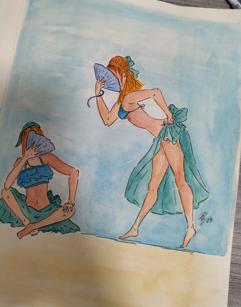 El mentón y el moflete debería haber ido más hacia atrás marcando la diagonal, así que el rostro ha quedado bastante raro... le echo las culpas al calor, porque me di cuenta tarde. 🤣