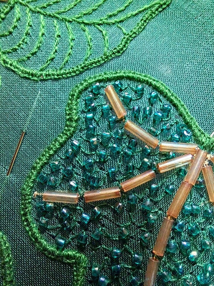 I should post more here. So here goes. Working on leaves. #stumpwork #tambourbeading #embroidery