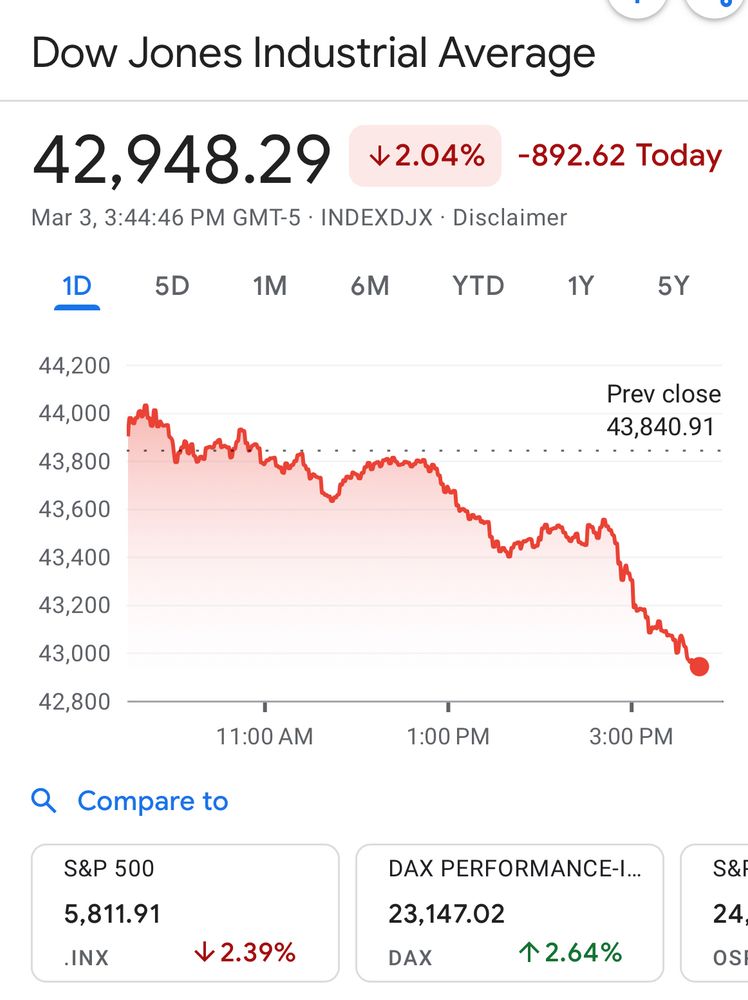 For context, the 9/2008 drop that we all thought was BAD was 777.68 points. The Dow itself was lower to begin with then, but this is likely to be catastrophic to Americans.