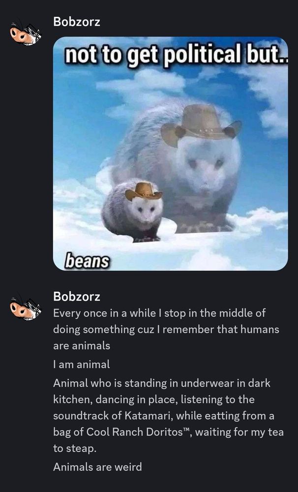 A dad Opossum who plays games, sings songs, and pets cats.
