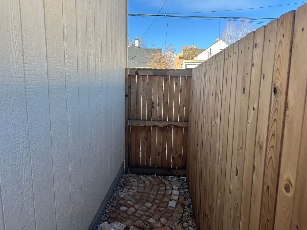 Access to our back gate is challenging with our new transit camper van on our parking pad. I built and installed a gate in a small, but usable spot in the other side of our garage. Need to finish up some trim bits, but we now have a functioning gate.