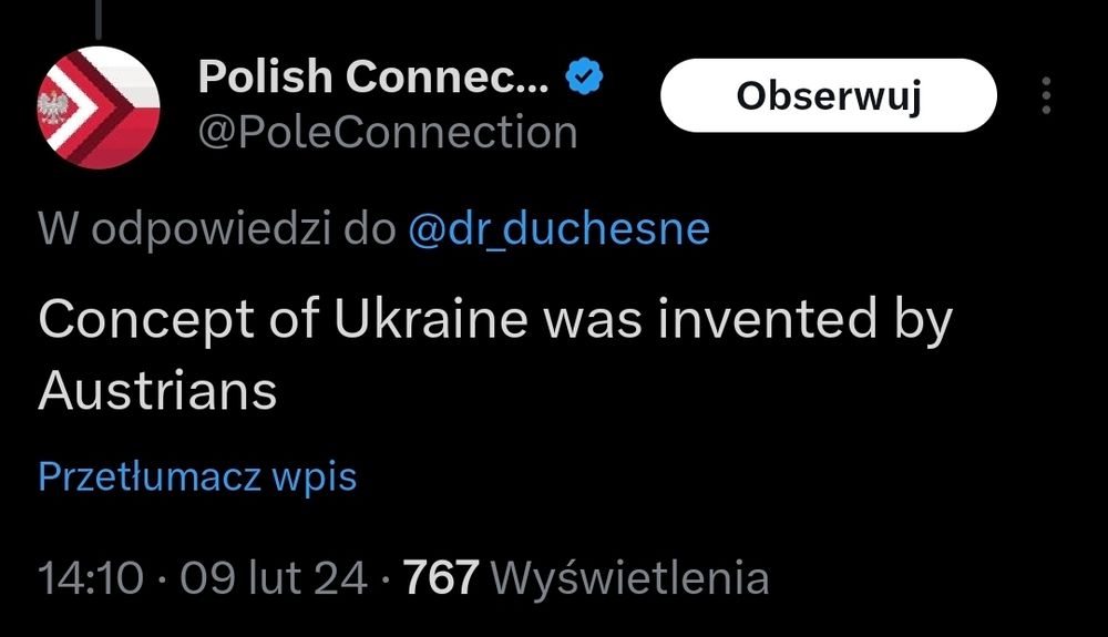 Może wam umknęło, ale konto @PoleConnection prowadzone przez kolegę Bosaka z Ruchu Narodowego, któremu boski Elon napisał "cześć", promuje brednie o ukraińskiej odpowiedzialności za Buczę, powiela 🇷🇺 propagandę o Ukrainie jako sztucznym państwie, i sufluje bzdury o niebiańskiej Jerozolimie.