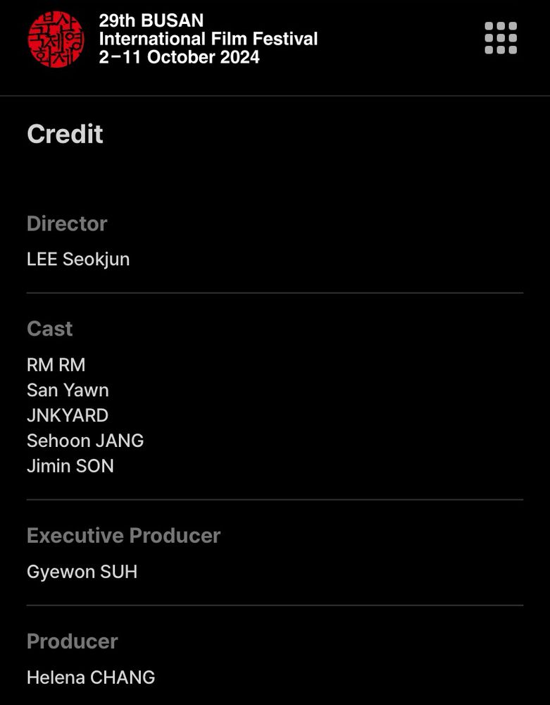 RM’s solo documentary ‘Right People, Wrong Place’ credits on Busan International Film Festival’s website.