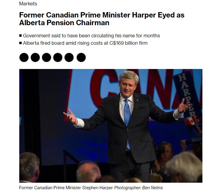 Former Canadian Prime Minister Harper Eyed as Alberta Pension Chairman