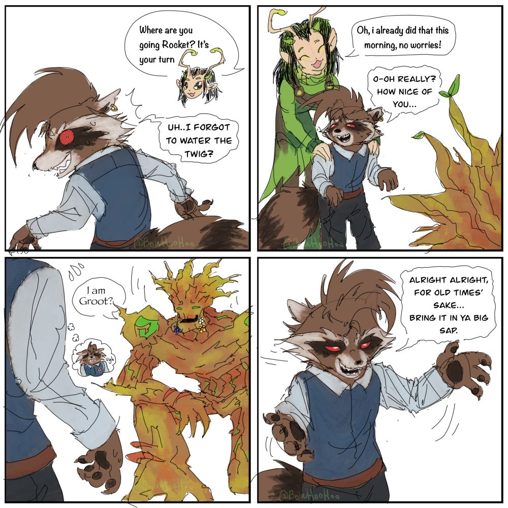 Anyways, Mantis and Groot shenanigans, I headcanon marvel rivals rocket also likes pink