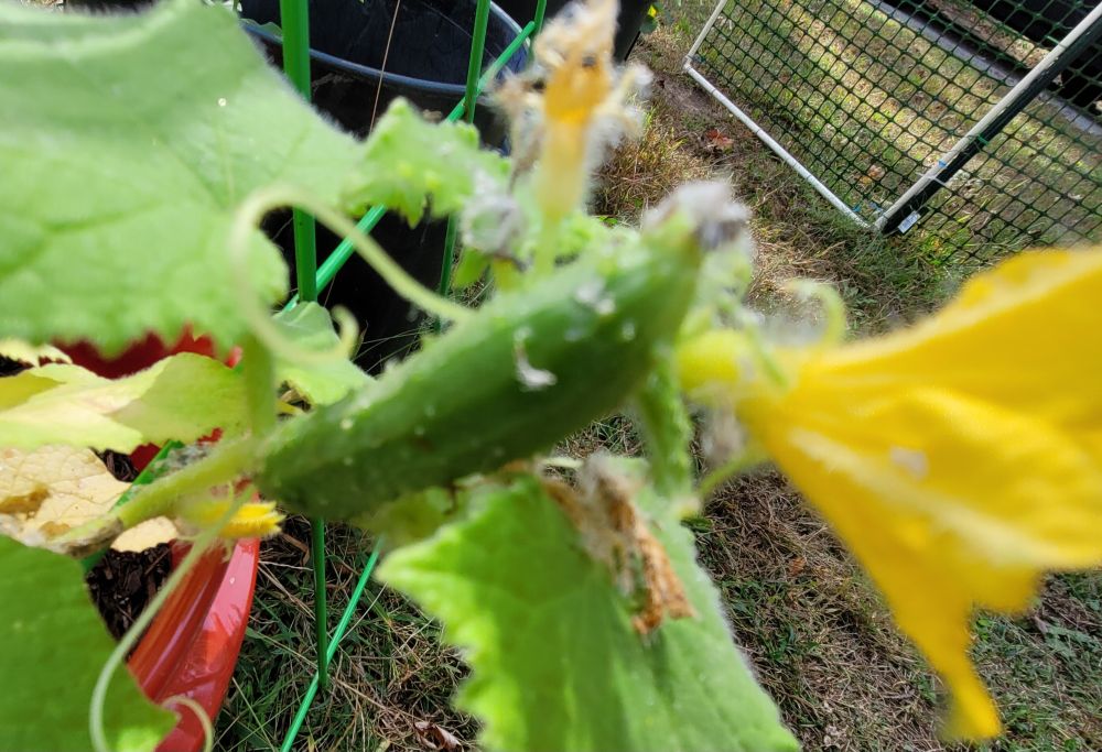 Bean flowers and a cucumber 🥒.