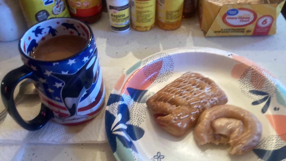 Good morning everybody!☕️🥐🥮 I hope you’re all doing well today! Time for coffee, meds, pain management, and pastry! It’s a beautiful cool day at Lake Hatchineha! 🤙🏽😎🏝🪖🇺🇸🦅 #January6th2025🤨⚖️