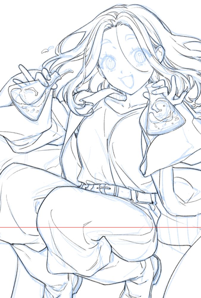 最近こうやって全身描いてから顔入れてる
