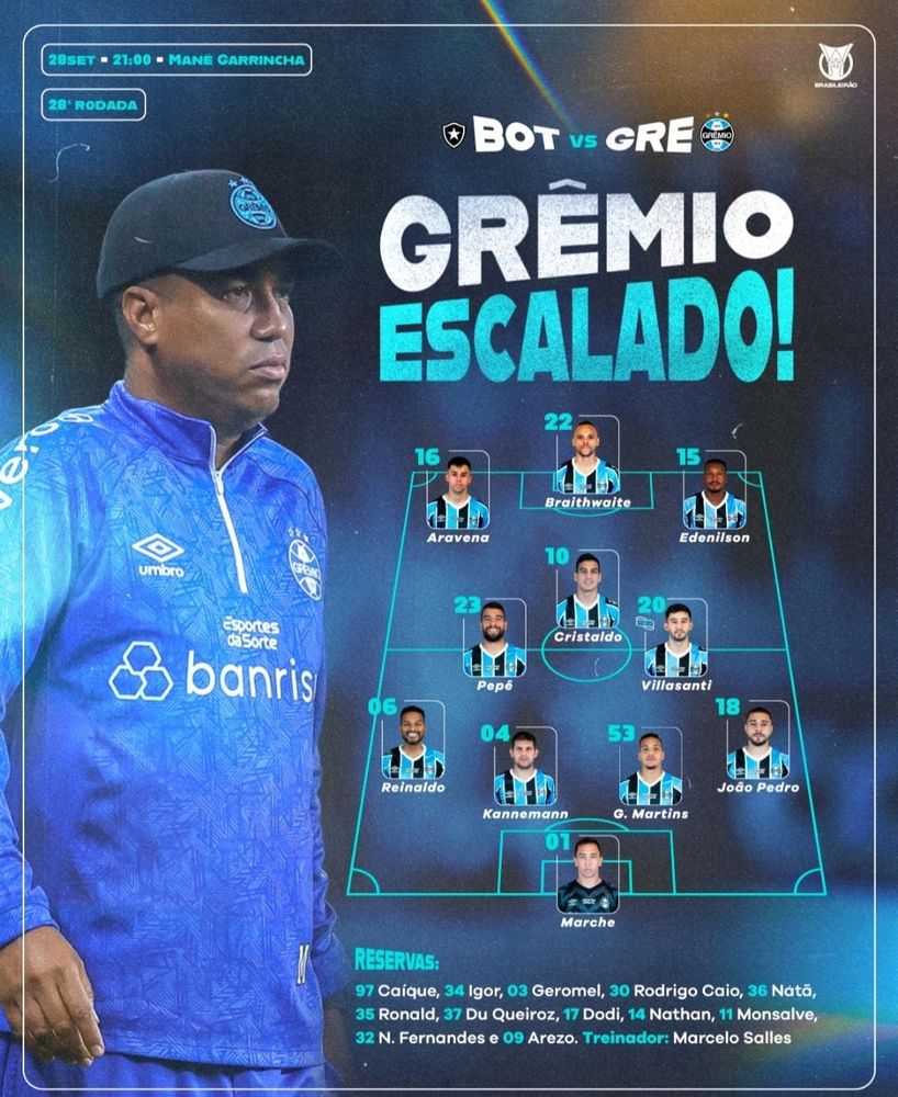 - Edenilson ganha a sua chance entre os 11.