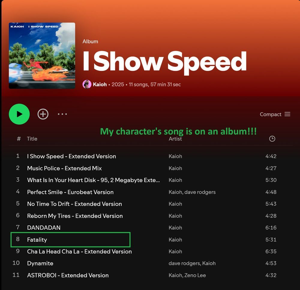 My MC "Fatality" has her very own eurobeat song. And if you'd like to hear it and some other amazing songs from an amazing artist, you can find the latest album over here