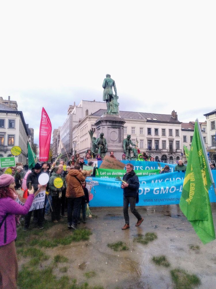 Des ONGs européennes manifestent contre la déréglementation des nouveaux OGMs.