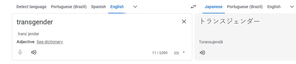 love when japanese does this . 'Toransujendā'. Wow