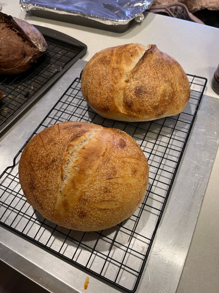 made a cinnamon roll loaf for the fiancé (it got a little too toasty. Crumb is last photo- very tasty), a chocolate loaf, and two regular loaves for her friends. Overall good weekend!