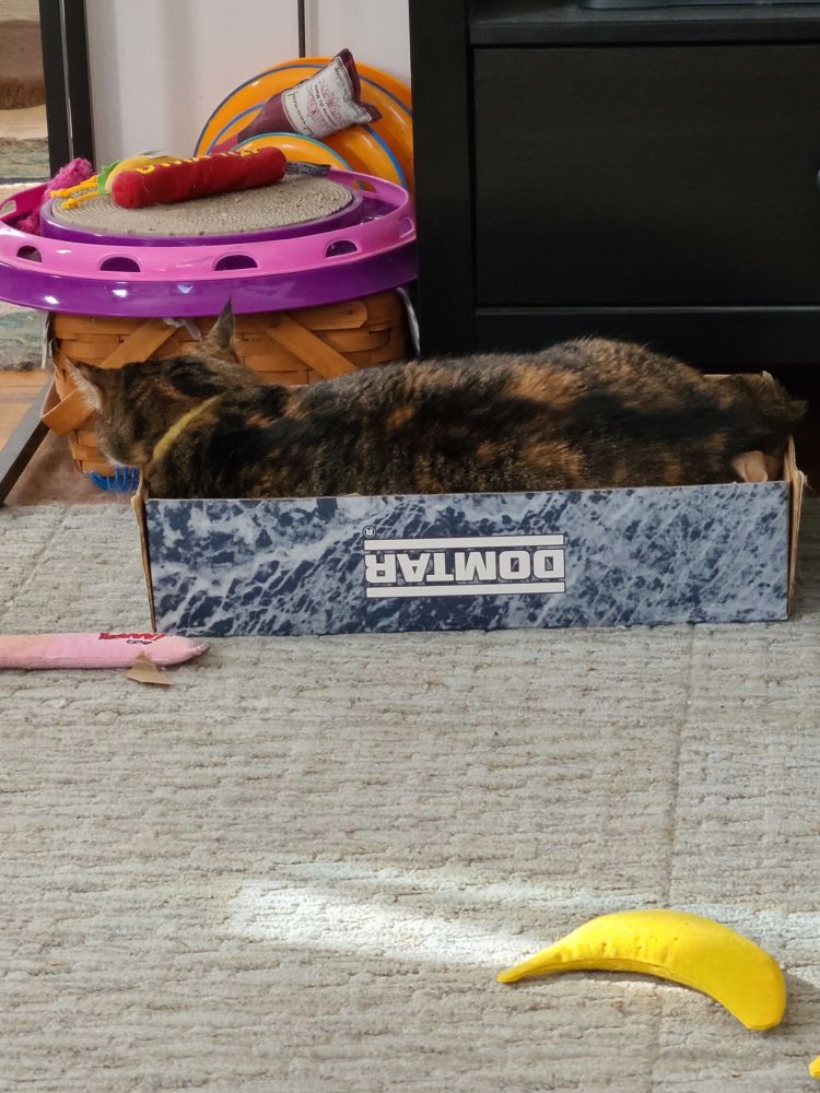 Morning Alaska, happy #catboxsunday my box is the lid of a printer paper box with crinkle paper in it.😻