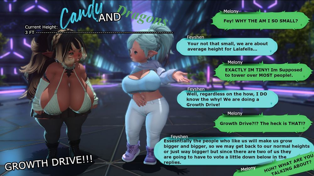 Your local short stacked Cotton Candy Knight and Draconic Lalafell, looming, growing and general shenanigans.