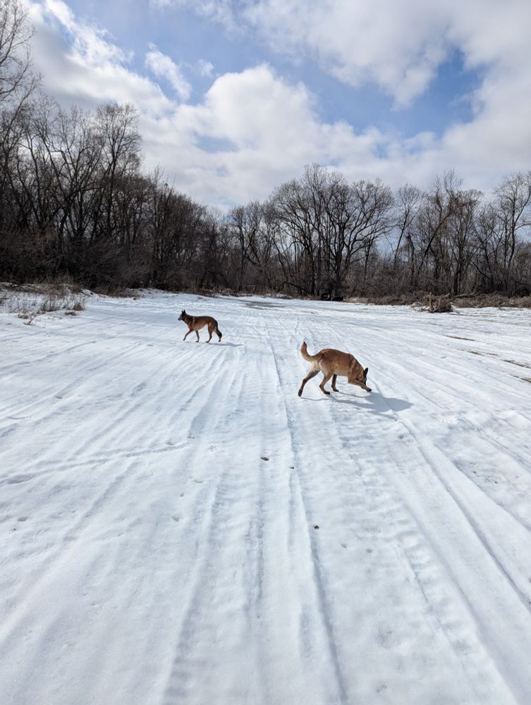 What is the well-dressed Malinois wearing on hikes this January? The well-fitting Ruffwear puffy coat. It is true that orange clashes with the underlying fur color, but it was the cheapest color, and I didn't see Secret extracting her wallet from her voluminous designer purse.