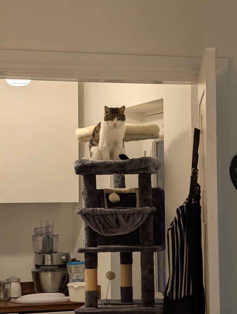 Cats have now finally discovered why we bought them a relaxation tower in a room with their food and a closable door away from baby hands.