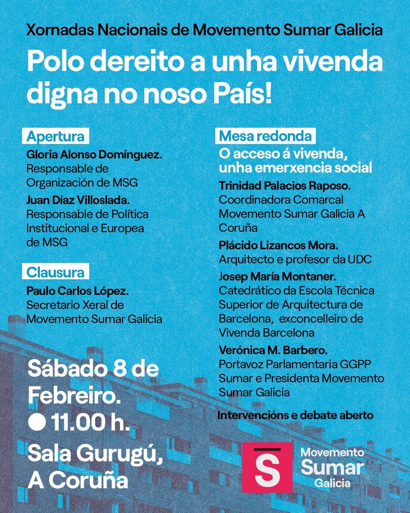 Anota! Este sábado 8 de febreiro organizamos a primeira xornada sobre vivenda. 🗣💖