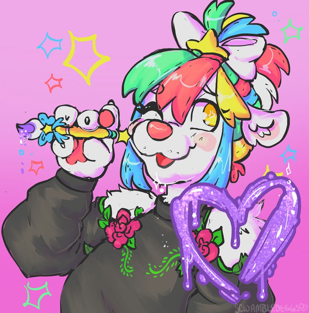 Art is by @moonbowplushie.bsky.social