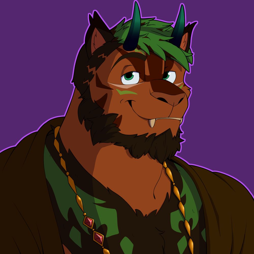 Huge thank you to @johnthelewdart.bsky.social for the amazing art of my Hrothgar, Everest!