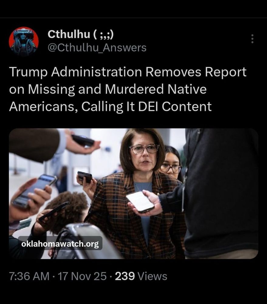 The regime removes report on missing & murdered Native Americans, calling it DEI content