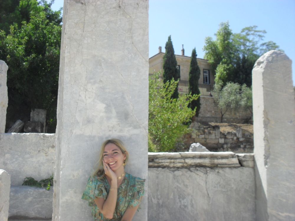 En el ágora romana, con la cámara mal apoyada, yo haciendo sentadillas y sin enfocar. Pero tienen algo que me deja el corazón calentito.