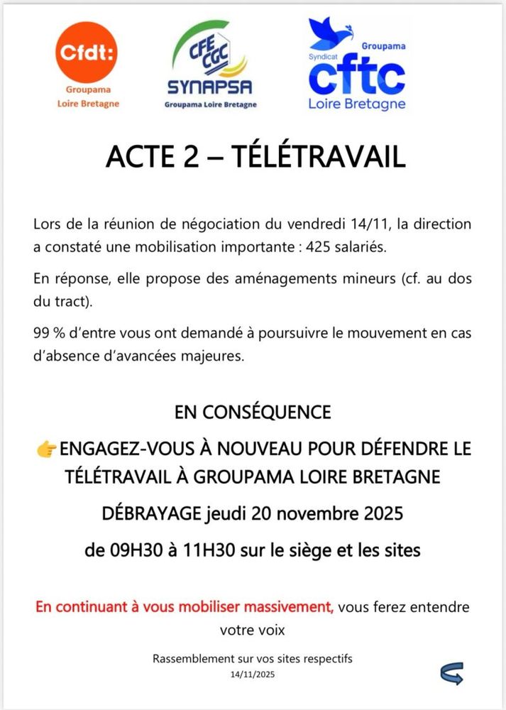 📅 Débrayage Jeudi 20 novembre 2025, de 9h30 à 11h30