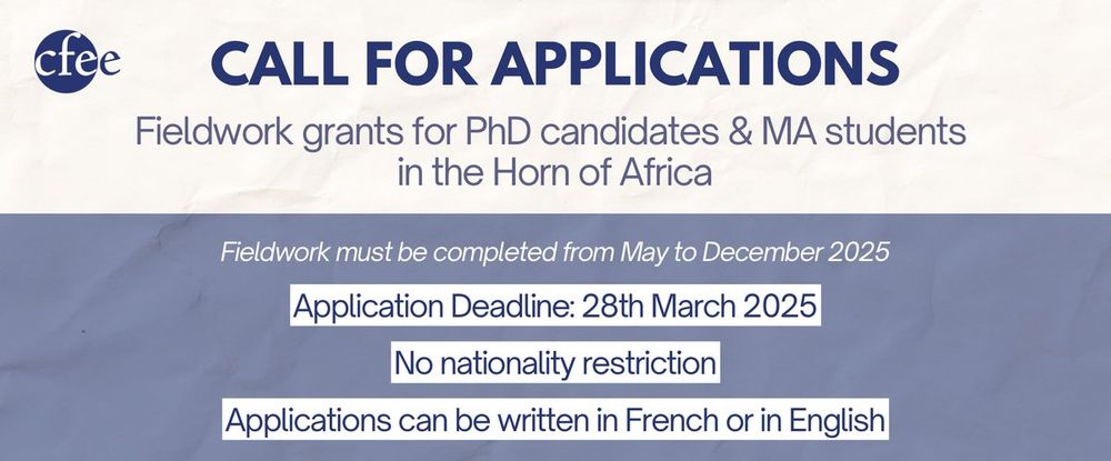 The French Center for Ethiopian Studies is offering field research grants for PhD candidates and Master’s students wishing to conduct fieldwork in #Ethiopia and the #HornOfAfrica