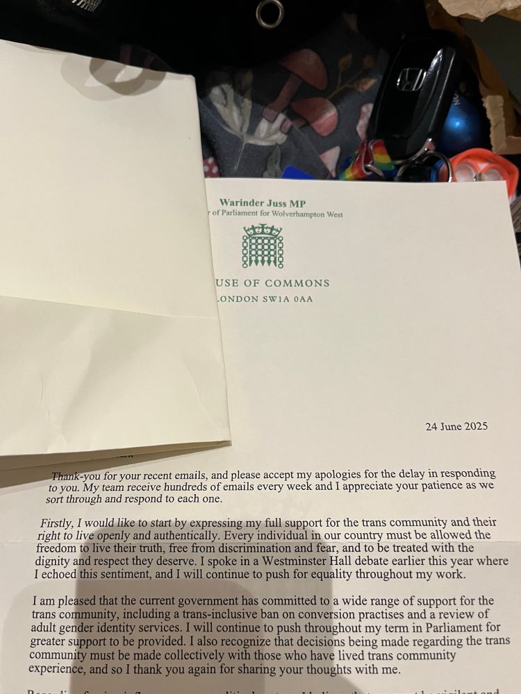 Sadly I didn’t get to speak to my MP but after my drive home this was waiting for me from him.