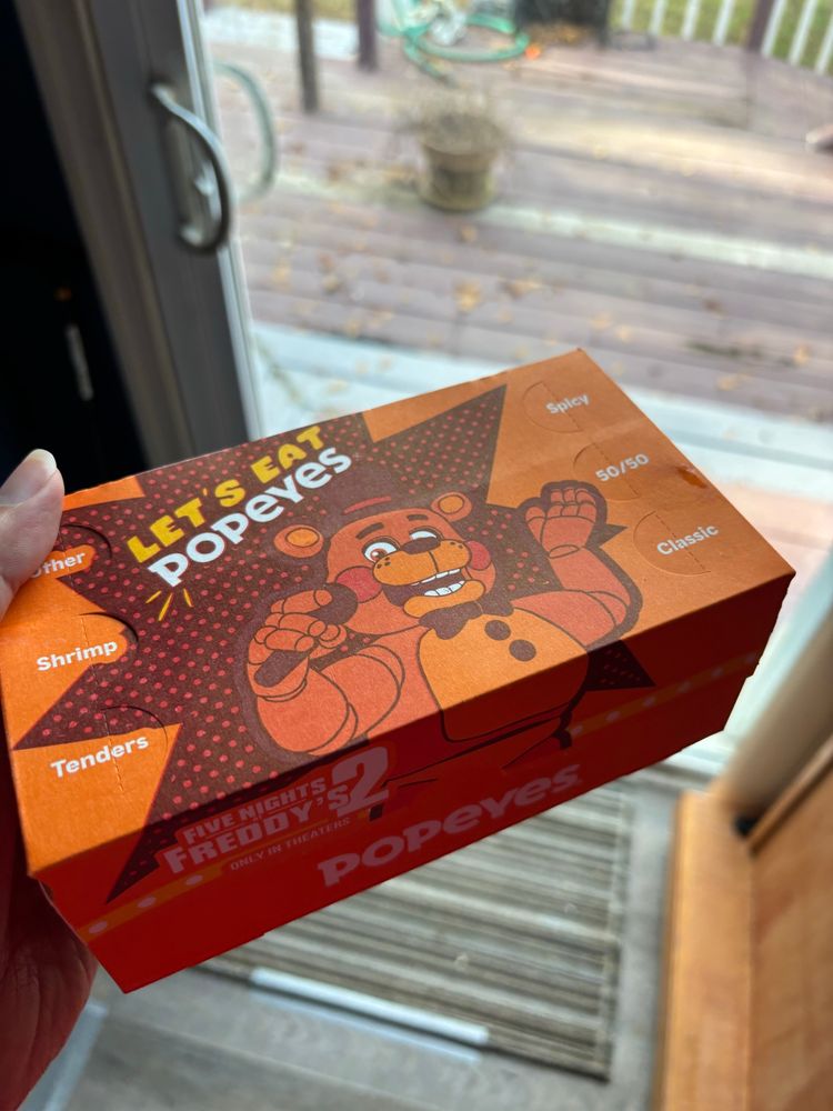 I think the Toy Freddy Mask/Popcorn Box promoting FNAF2 has to be the coolest popcorn box I have ever seen, it’s so creative and good to look at. The idea of taking the head off and using it as a mask while there’s also an endoskeleton face on the box itself is brilliant. #fnaf