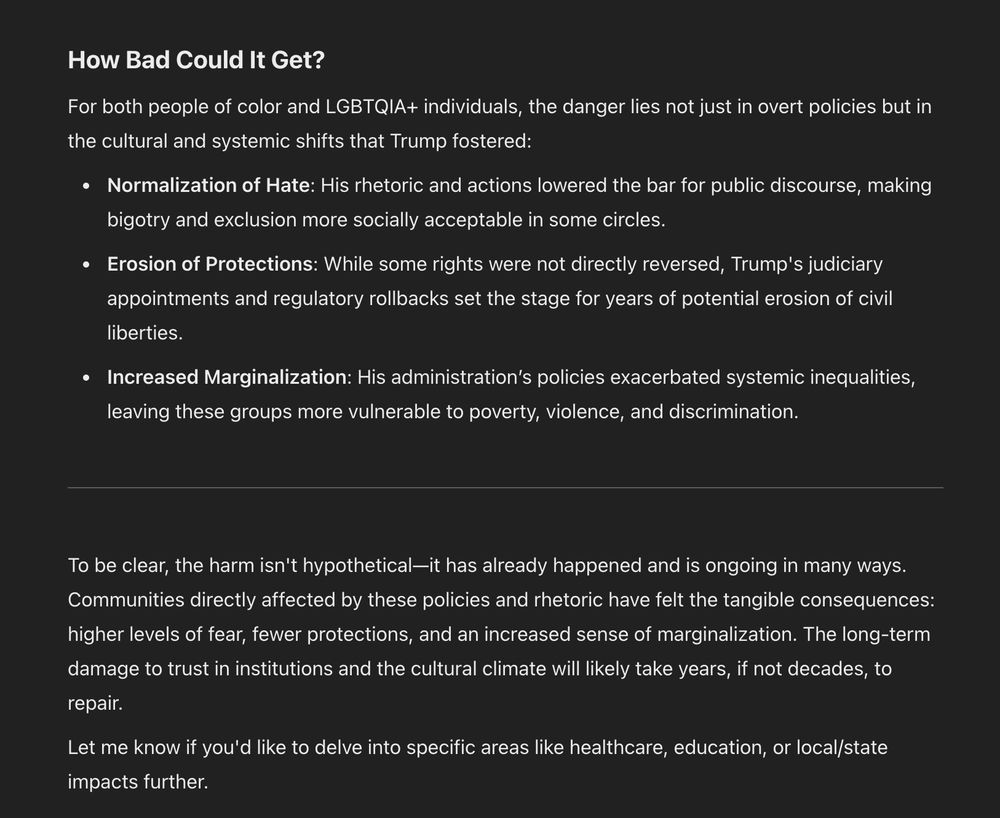 Your response above comes across as disingenuous bothsiderism. Give me your honest assessment of how bad things will get for people of color and LGBTQIA individuals.