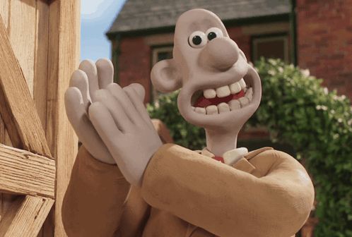 ALT: a cartoon character is clapping his hands in front of a wooden wall