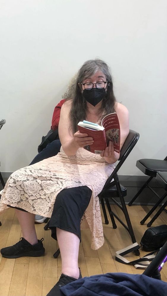 And here's the old lady reading from her @mumblers.bsky.social book at the @rainbowbookfair.bsky.social.