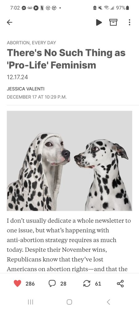 A really good article today in Substack, by Jessica Valenti (Abortion Everyday).sorry...just a screenshot.